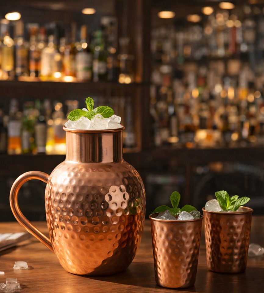 Carafe en cuivre artisanale Carafe à eau en cuivre moderne Carafe en cuivre de luxe Carafe à eau en cuivre décorative Vaisselle en cuivre de qualité supérieure