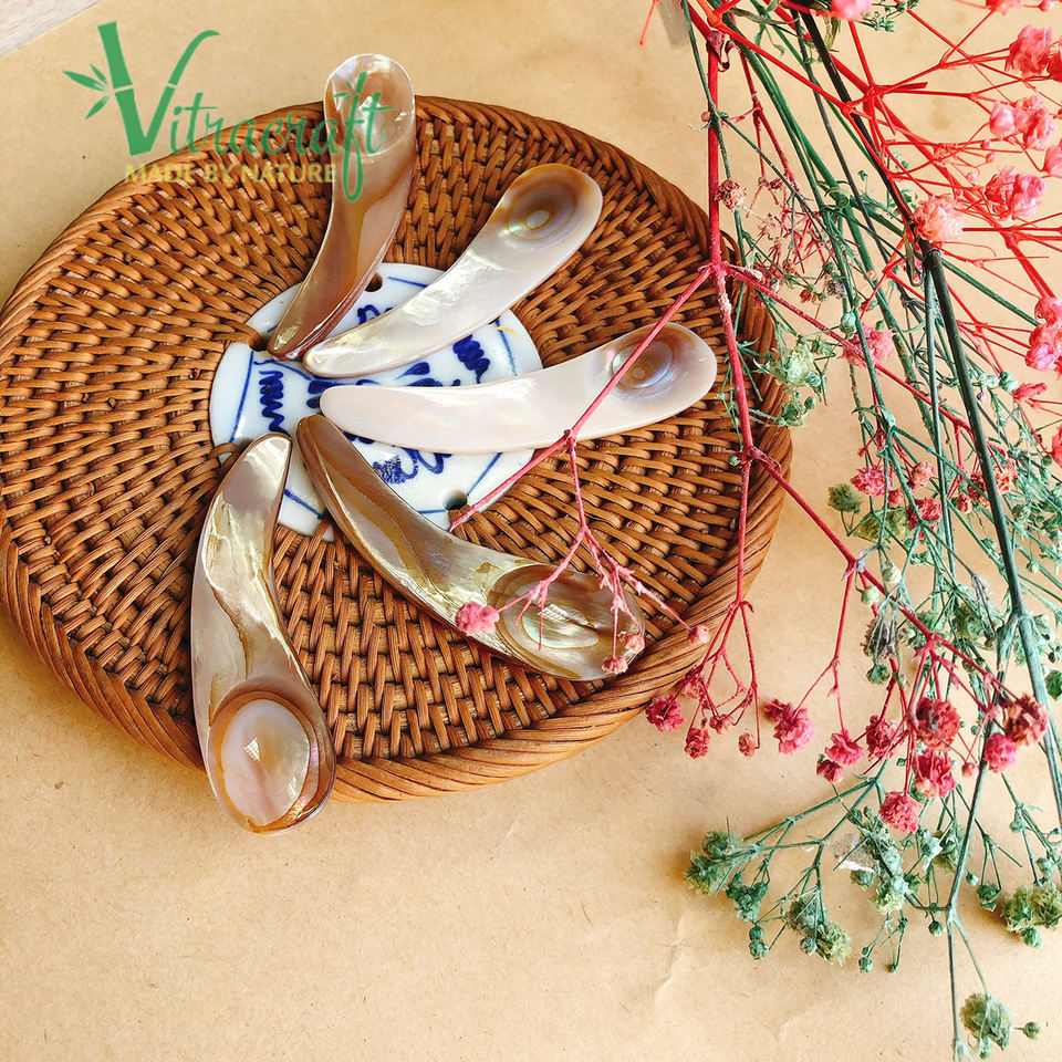 Cuillères cosmétiques faites à la main. Mini cuillère, cuillère de soins du visage, cuillère artisanale. Fabriqués à partir de naturel rose mère-de-perle. Taille 7cm