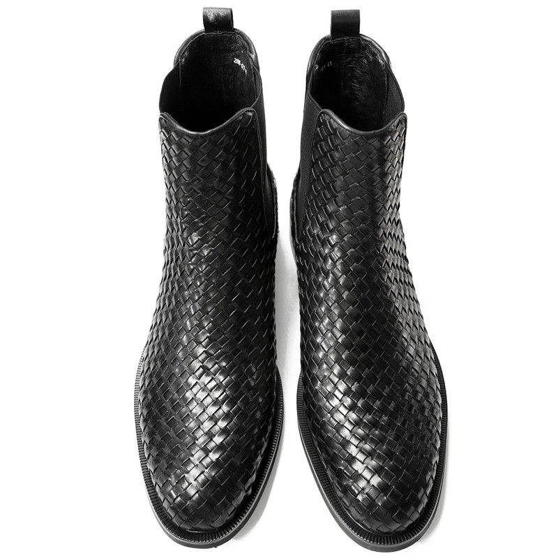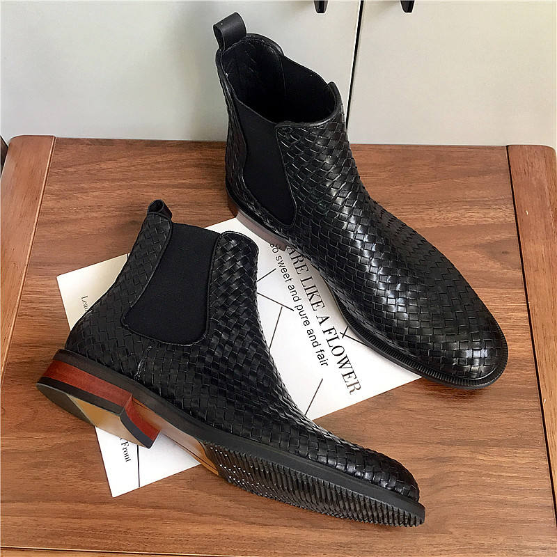 Bottes d'affaires haut de gamme en cuir tressé faites à la main, style britannique, chaussures montantes pour hommes, bottes Chelsea en cuir.