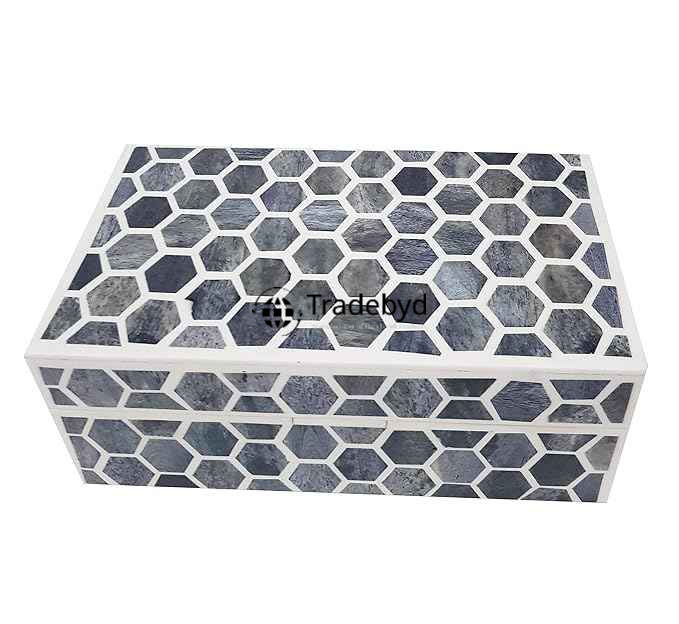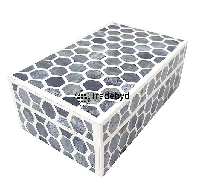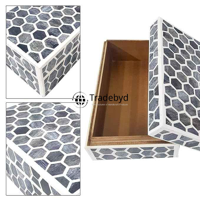 Boîte décorative faite à la main en incrustation d'os et de vadrouille pour cadeau de luxe organisateur de bijoux élégant et pièce d'accent souvenir Tradebyd
