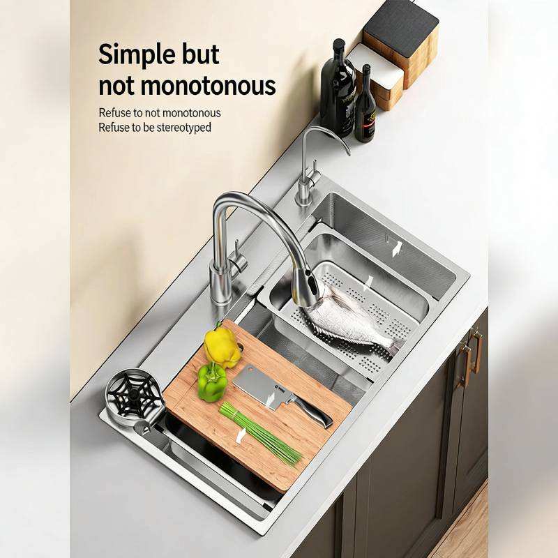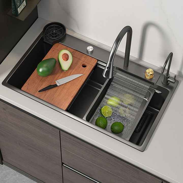 Évier de cuisine intelligent à double paroi en acier inoxydable, fait main, résistant aux rayures et à l'usure, style cascade