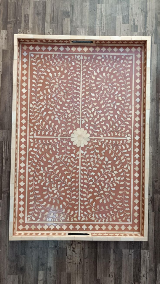 Plateau en os incrusté de motifs floraux, fabriqué à la main en Inde, plateau de service et de table en os incrusté pour la maison, l'hôtel, les restaurants et le bureau