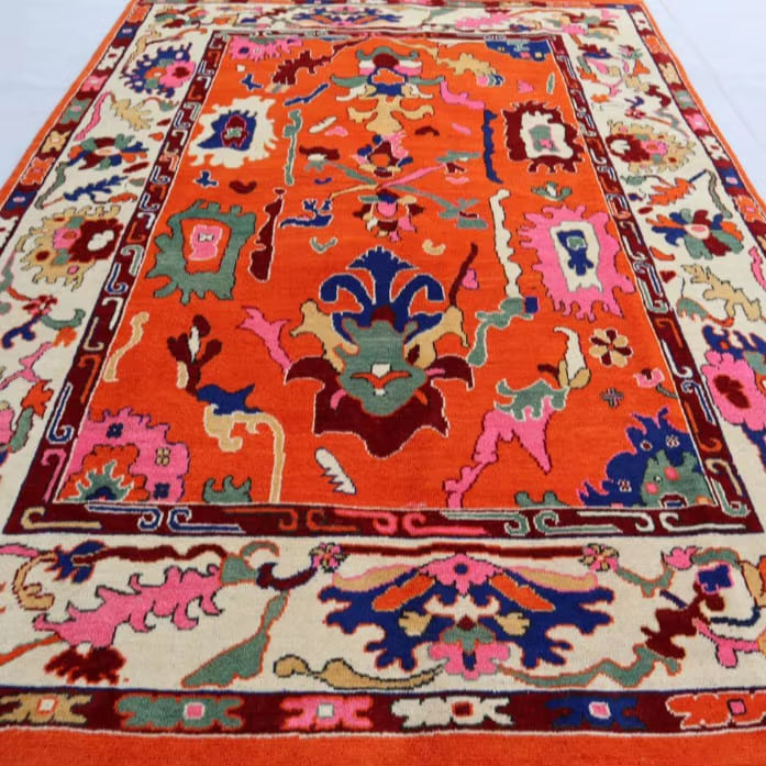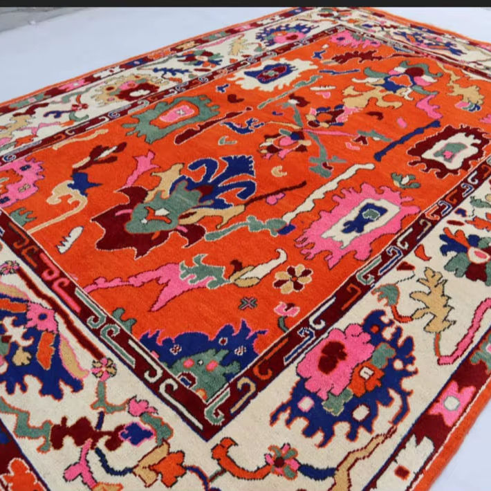 Tapis en laine noué à la main Oushak orange, design abstrait moderne pour chambre/salon, taille personnalisable
