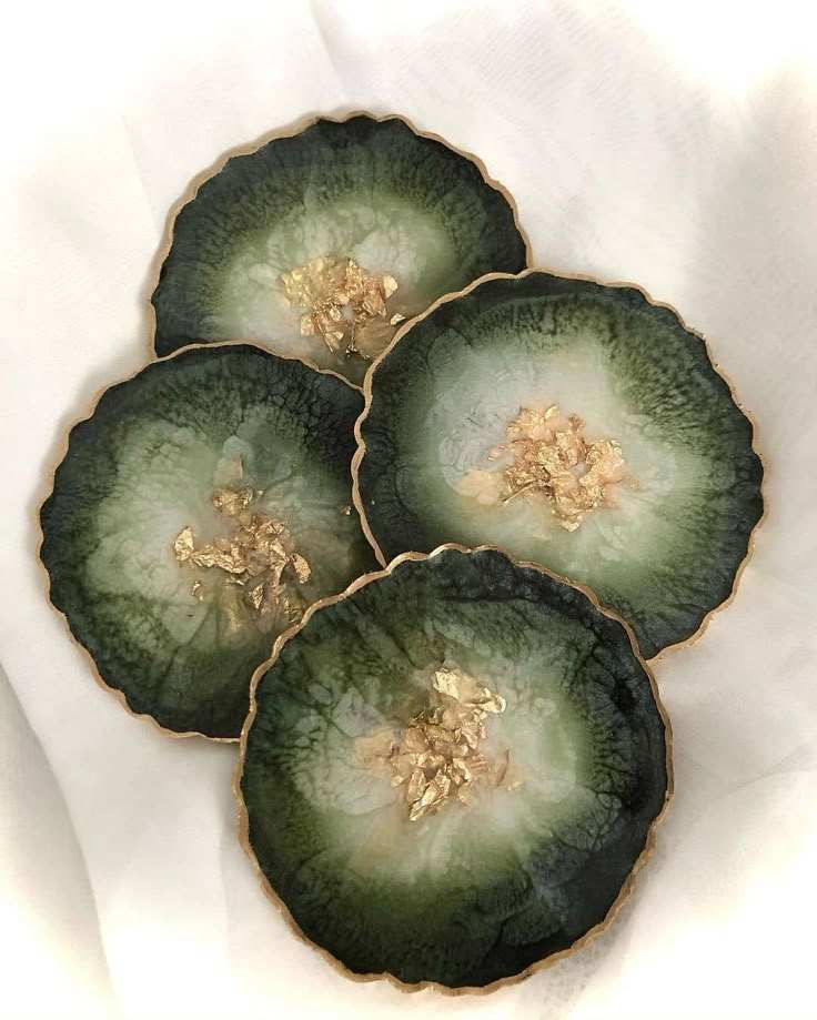 Dessous de verre faits à la main en résine premium disponibles en plusieurs formes, couleurs et designs adaptés à tout thème de décoration