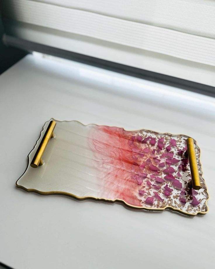 Plateau de service en résine fait main, parfait pour un usage quotidien comme pièce maîtresse élégante ou accent décoratif dans les pièces.