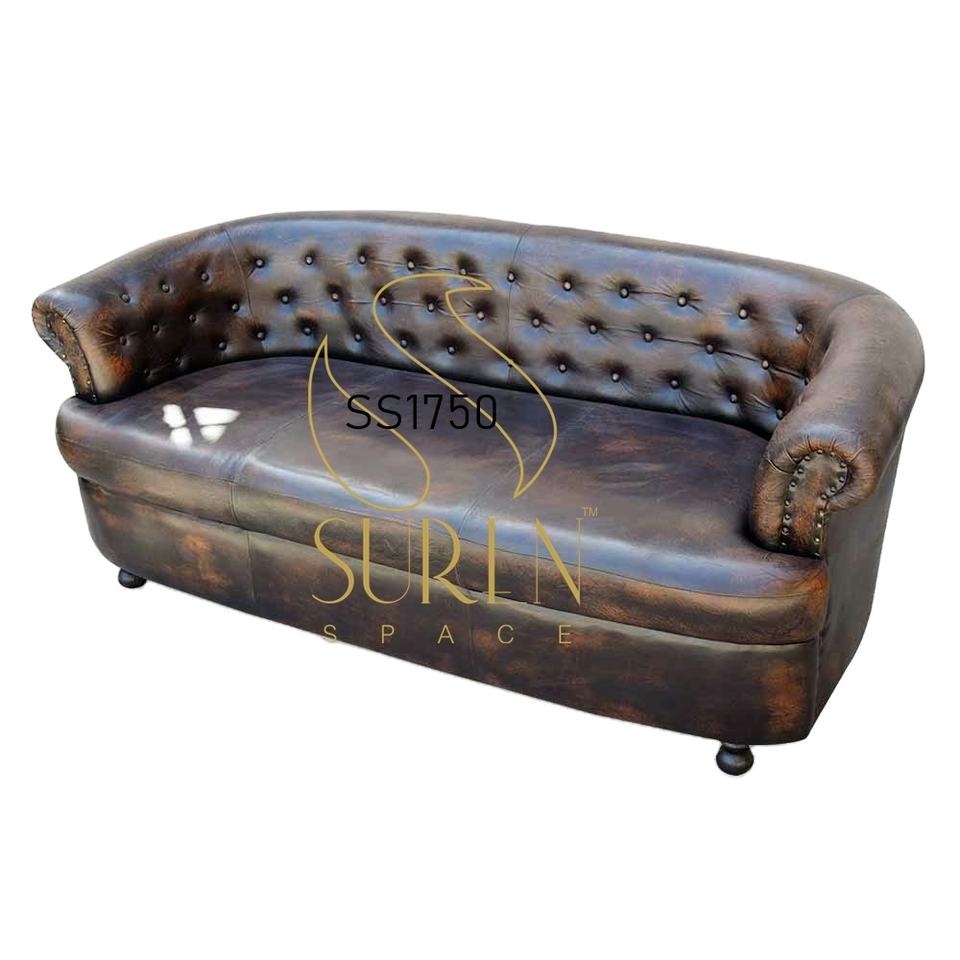 Canapé tufté à dossier rond fait main avec cuir véritable de design industriel pour le salon des hôtels design fournisseur indien