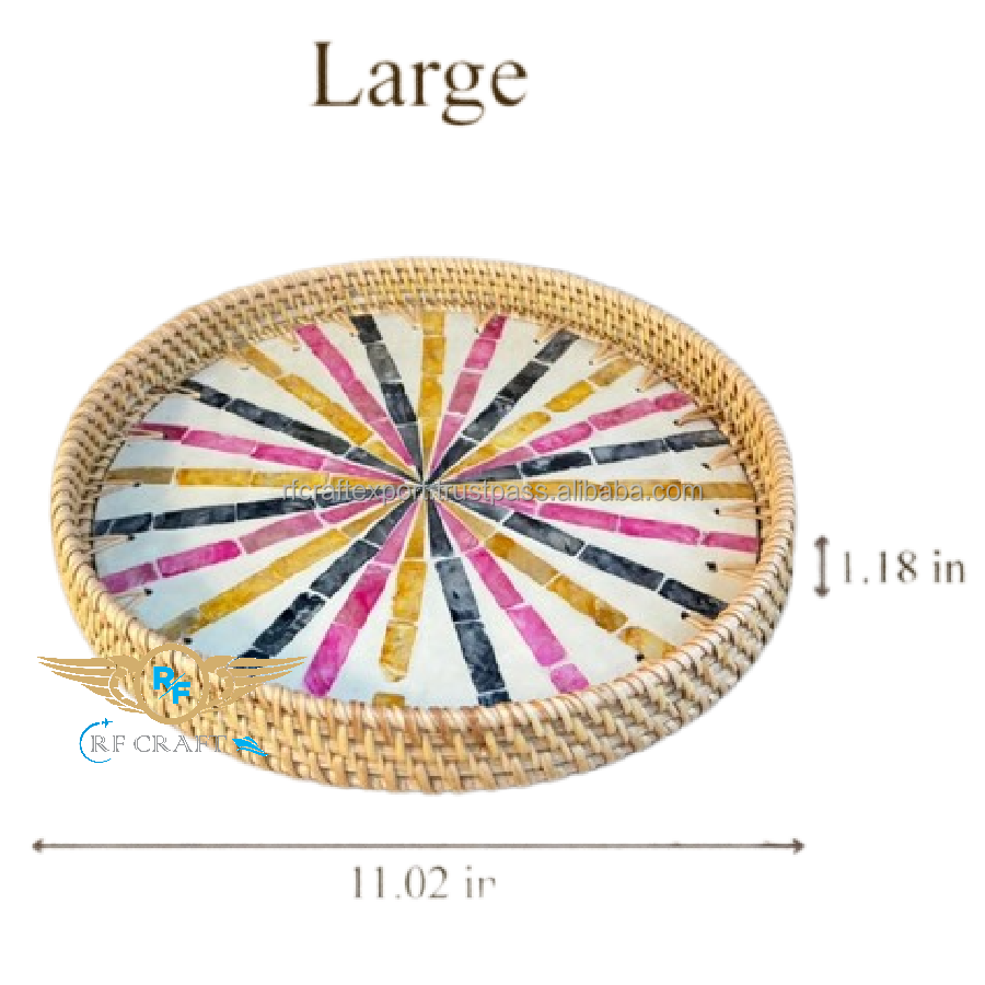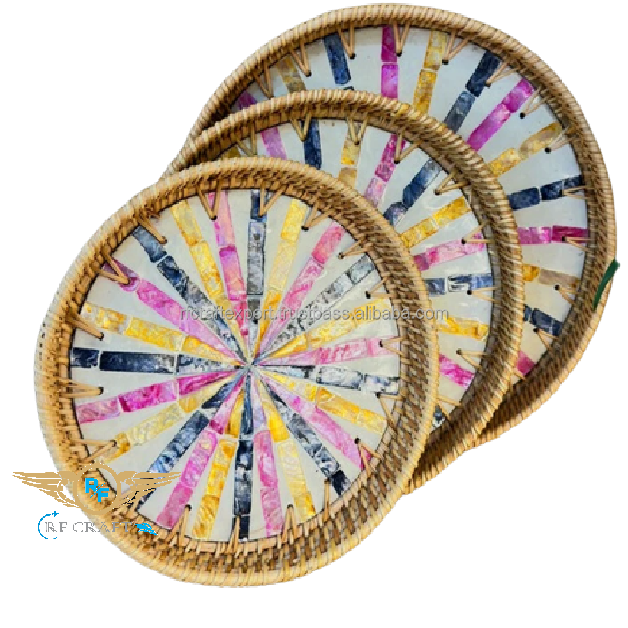 Plateau rond en rotin fait main nouveau design plateau de service en bois pour la cuisine pour le panier à pain aux fruits