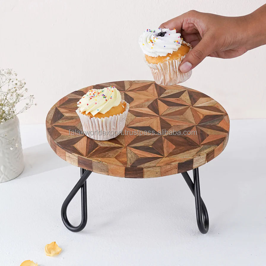 Support de gâteau en incrustation de résine rond fait à la main Matériau en bois haut de gamme avec incrustation d'os pour les anniversaires et les événements CakeTools Wholesale By FWE