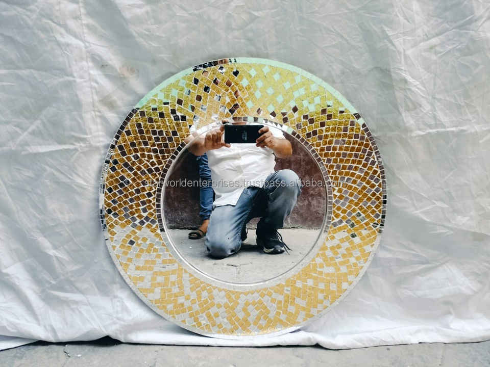 Miroir mural fait main en fer de forme ronde Miroir mural au design moderne pour la décoration d'hôtels et de restaurants disponibles au prix
