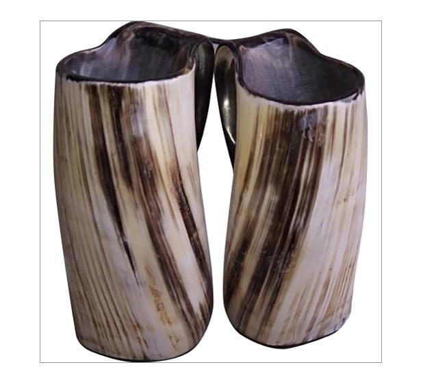 Tasses rustiques en corne faites à la main, au style créatif, offrant un élément de décoration parfait à côté de l'utilisation fonctionnelle des boissons