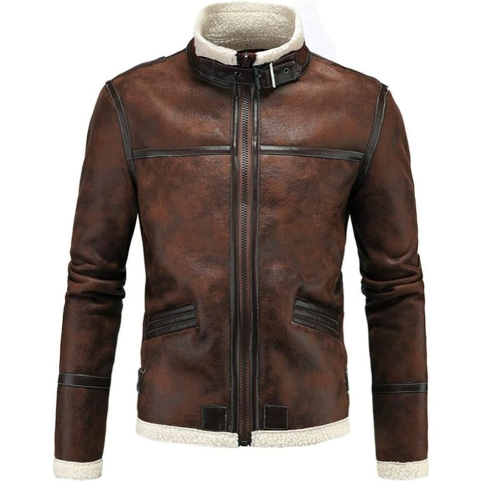 Veste en cuir d'agneau faite à la main avec fourrure de chèvre authentique à l'intérieur, manteau d'hiver doublé de fourrure pour homme