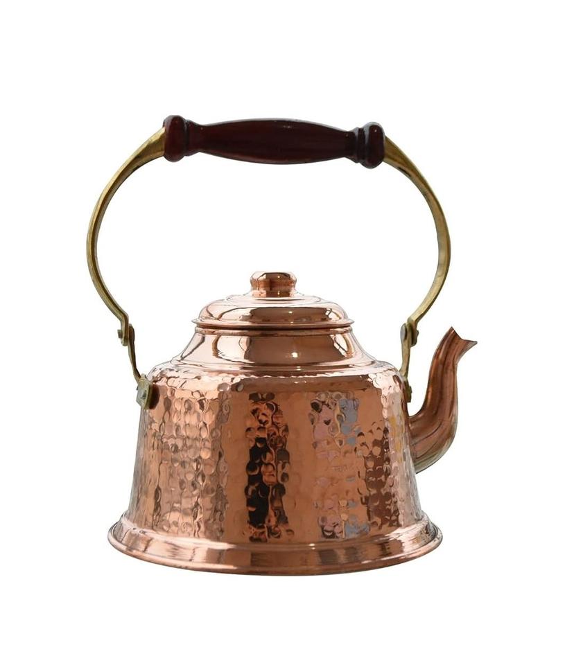 Bouilloire en cuivre vintage faite à la main avec bouton en laiton et lignes courbes idéale pour les collectionneurs de décorateurs ou les chefs
