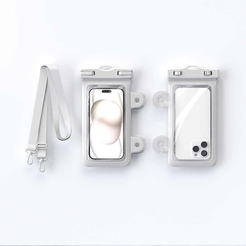 Pratique mains libres avec ventouse pochette de téléphone étanche double lanière stable parfaite pour la douche, le bain et les parcs aquatiques