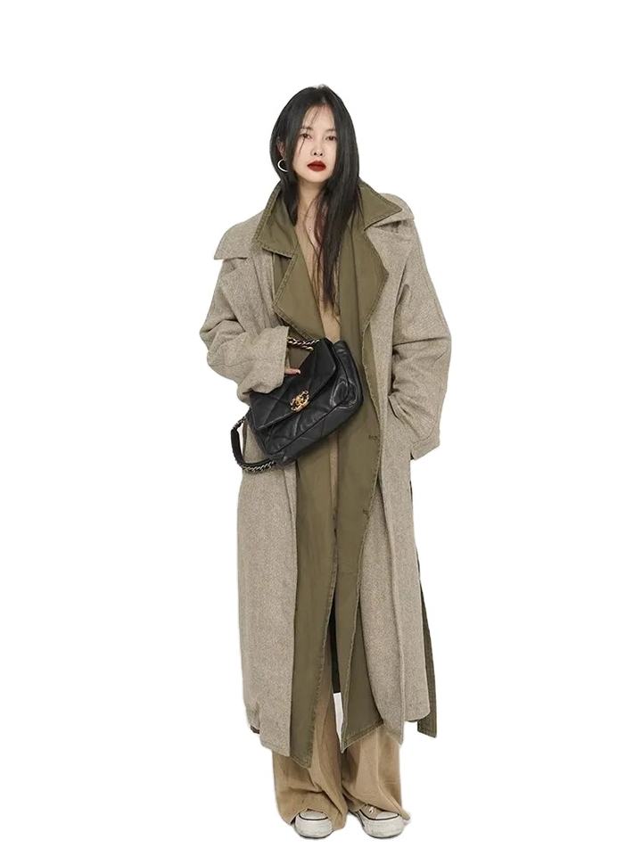Beau Patchwork Long Trench Réversible pour Femmes Vêtements De Designer De Luxe Piste Mode Premium En Cuir Option Disponible