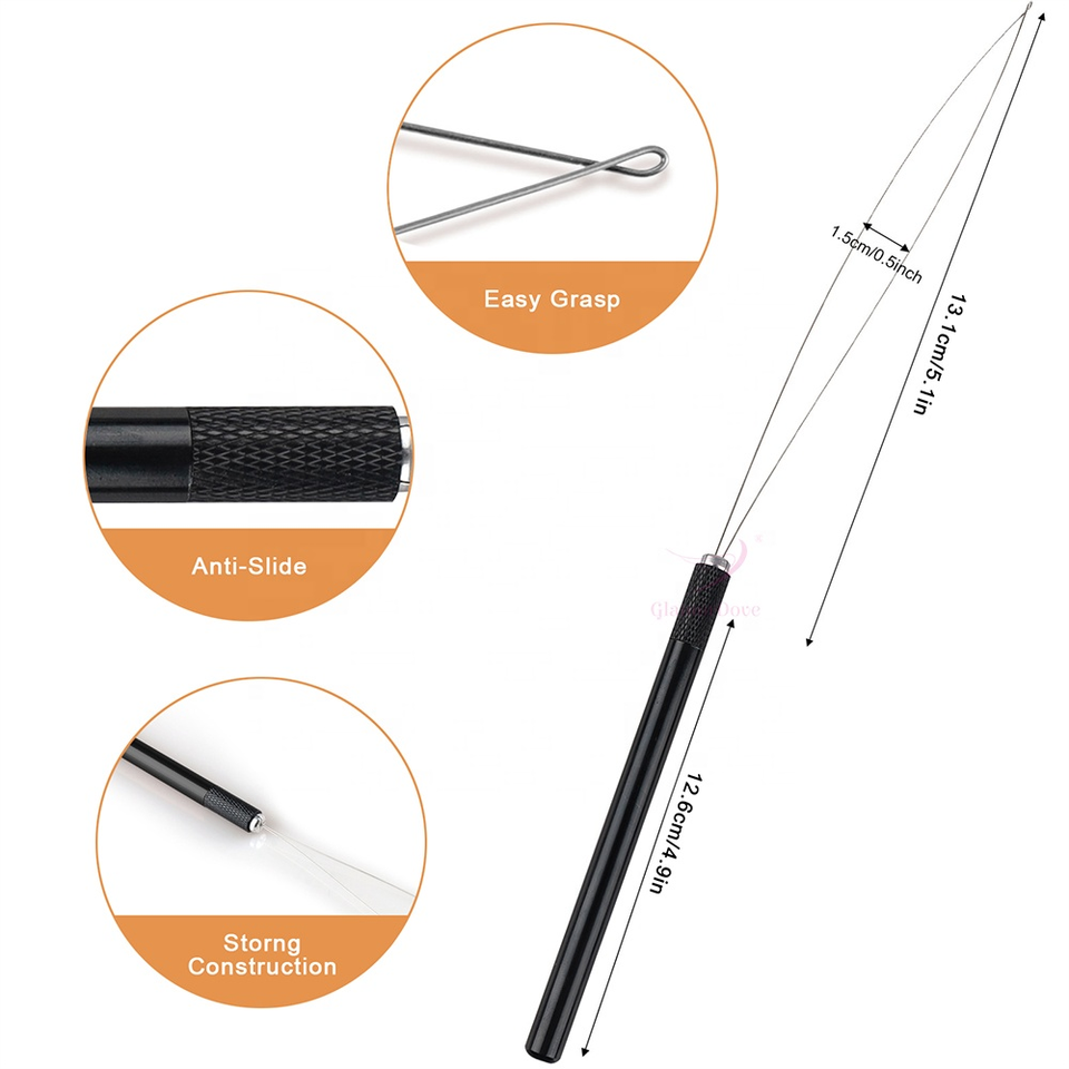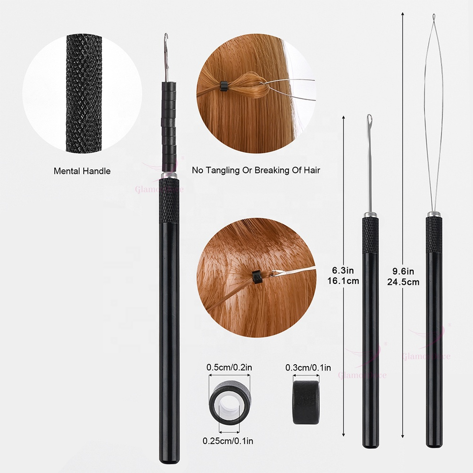 Kit d'outils pour extensions de cheveux à nouer à la main, avec perles blanches et crochets de tirage, pinces pour extensions de trame, outils multifonctionnels pour le soin et le coiffage des cheveux