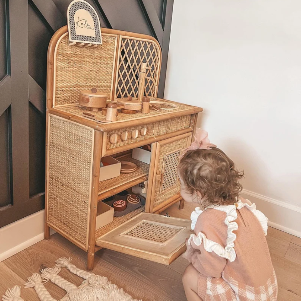 Cuisinette de Chef en Rotin Tressé à la Main Jouet pour Enfants Style Bohème Jouet de Cuisine en Rotin pour Enfants en Gros du Vietnam Bon Prix