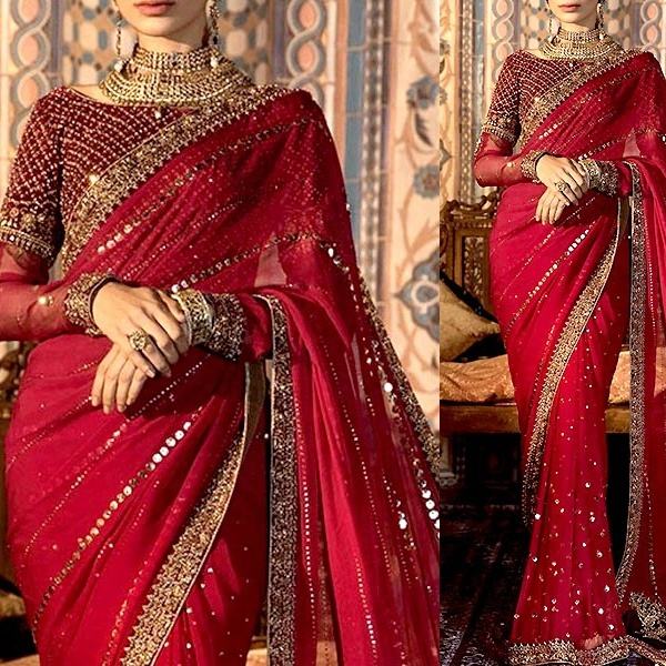 Sari en mousseline de soie brodé à la main avec doublure intérieure, très vendu en 2021