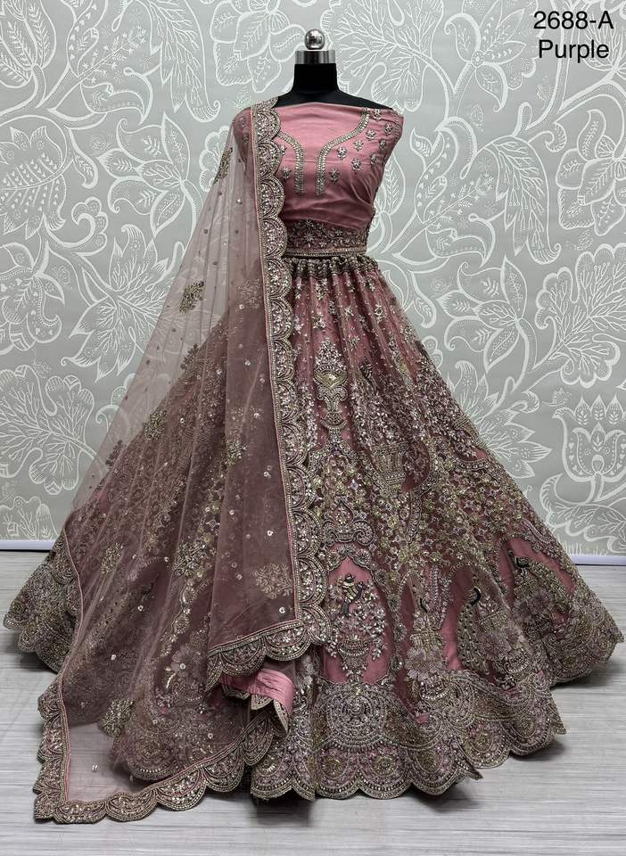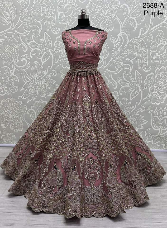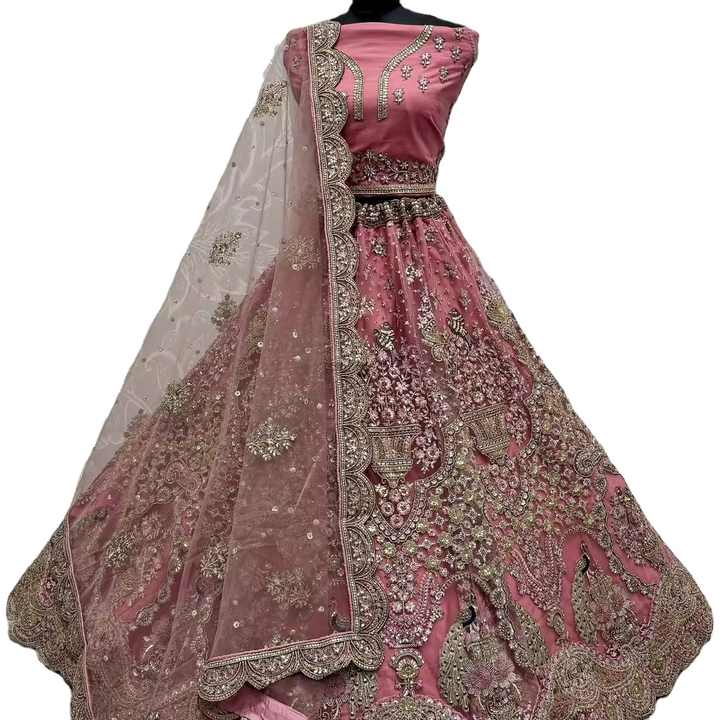 Travail manuel Look inspiré filet brodé avec quatre côtés belle dentelle et butte partout vêtements de fête Lehenga coli pour la mariée