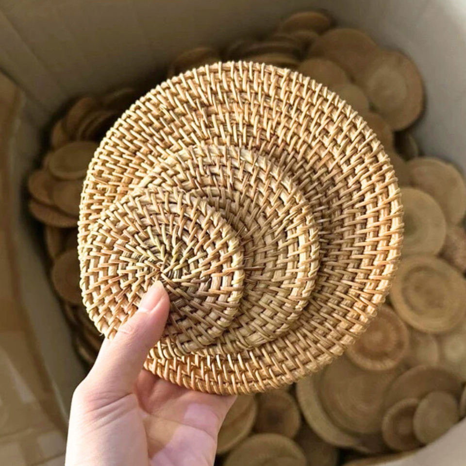 Assiette en osier tissé à la main, motif floral, décoration de table minimaliste rustique, écologique, fabriqué au Vietnam