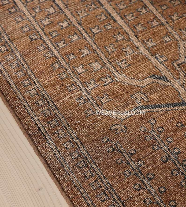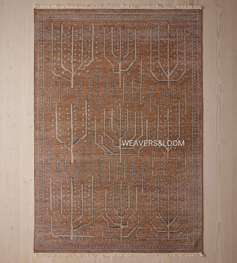 Tapis vintage brun tissé à la main avec motif Arbre de Vie – Tapis en laine bohème