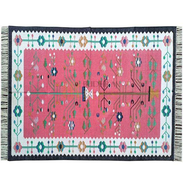 Handwoven Dhurrie Carpet From Romania Classic Flatweave Design Cotton Kilim Rug for Living and Bedroom Spaces