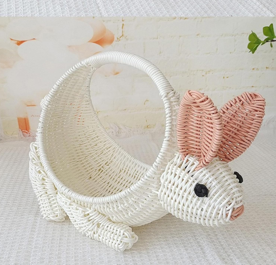 Panier de fleurs de Pâques tissé à la main en rotin et oreilles de lapin pour le stockage décoratif de vacances ou le panier cadeau de décoration intérieure