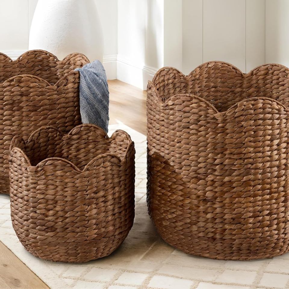 Product name:Water Hyacinth Scalloped Storage Baskets for Organizing