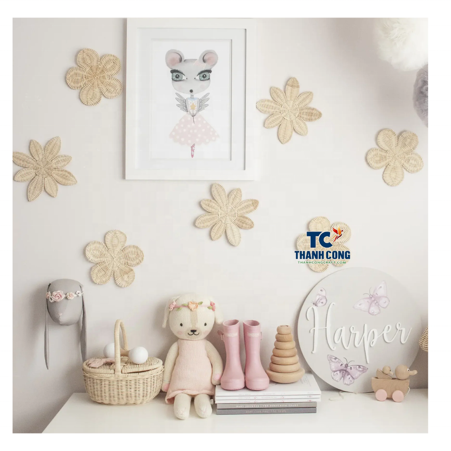 Décoration murale en rotin naturel en forme de fleur tissée à la main pour chambre d'enfant Écologique Fait à la main en gros disponible