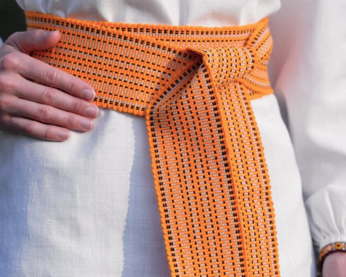 Handwoven Krajka Sash Belt Orange & Black Woven Waist Belt for Women & Men Modern Folk Style Custom Gift