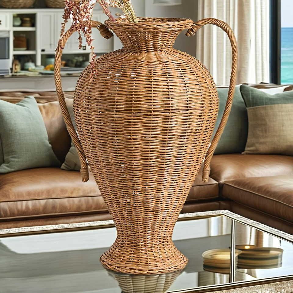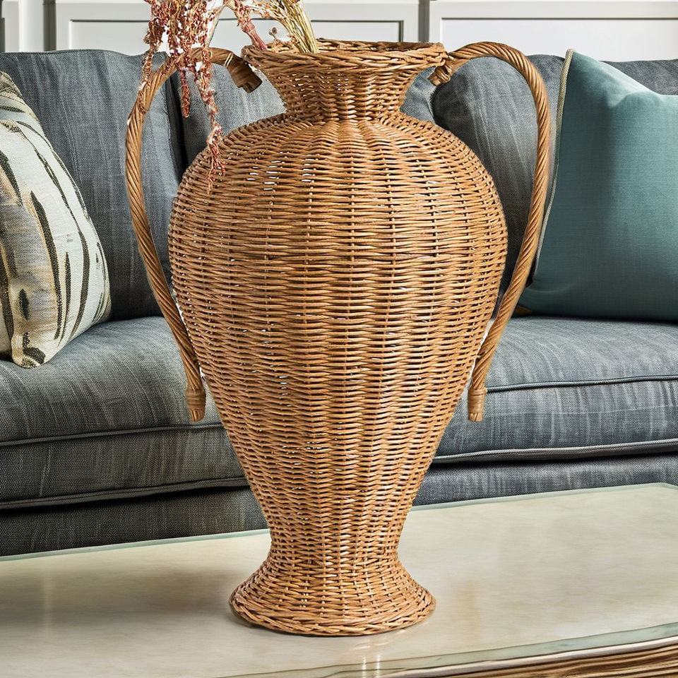 Grand vase en rotin marron tissé à la main-Design Alford avec double poignées, décor moderne 2025 | Cadeau en gros par Tienphong