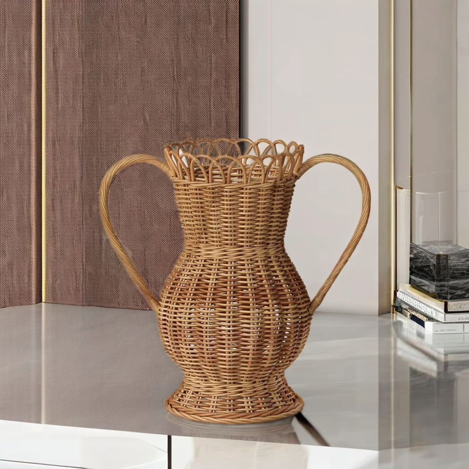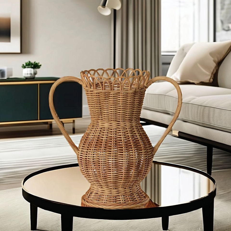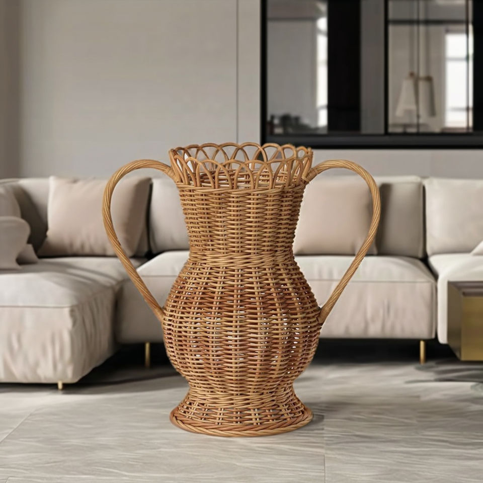 Grand vase en rotin tissé à la main-2025 Vases à double poignée naturelle pour la décoration intérieure moderne | Vente en gros par Tienphong
