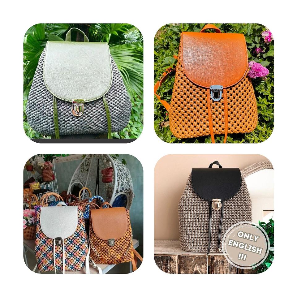 Product name:Handwoven Macrame Backpack Kit With Leather Base and Flap