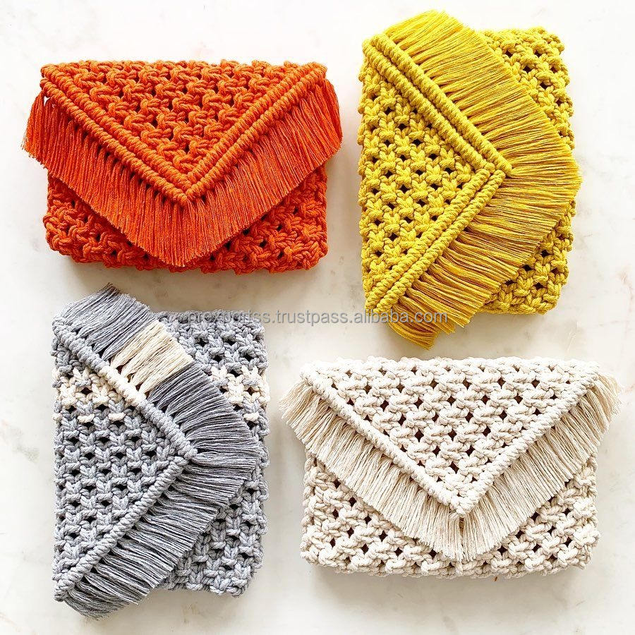 Sac à main en macramé tissé à la main avec franges, perles et soie, pochette enveloppe nouée à la main, durable, pliable, accessoire de mode estival