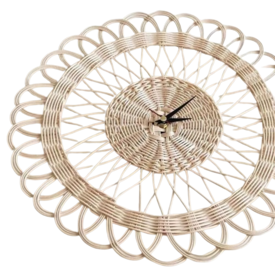 Nom du produit:Horloge murale de style rustique horloge murale flore en rotin