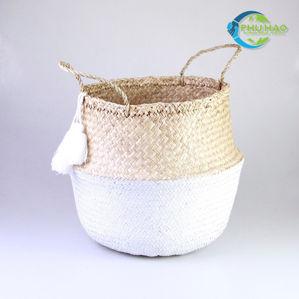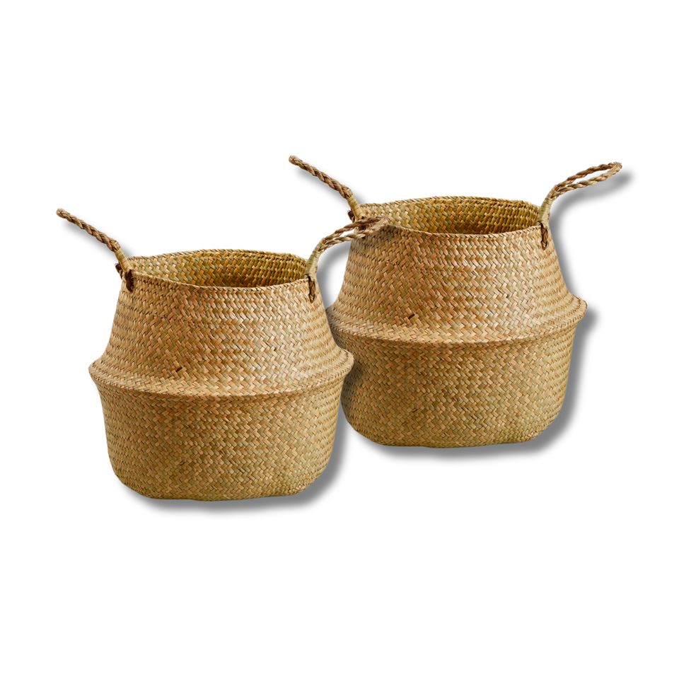 Panier de paille décoratif et fonctionnel tissé à la main en herbe de mer naturelle pour jouets, vêtements et affichage de plantes d'intérieur