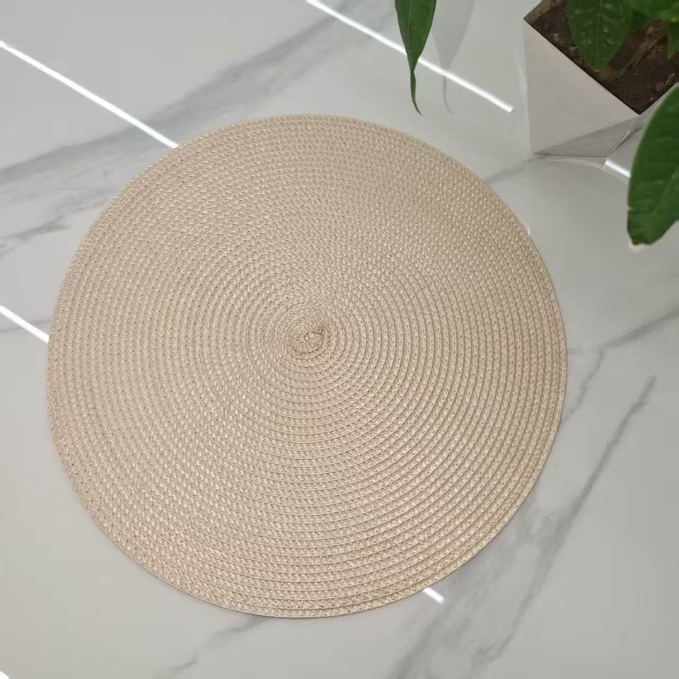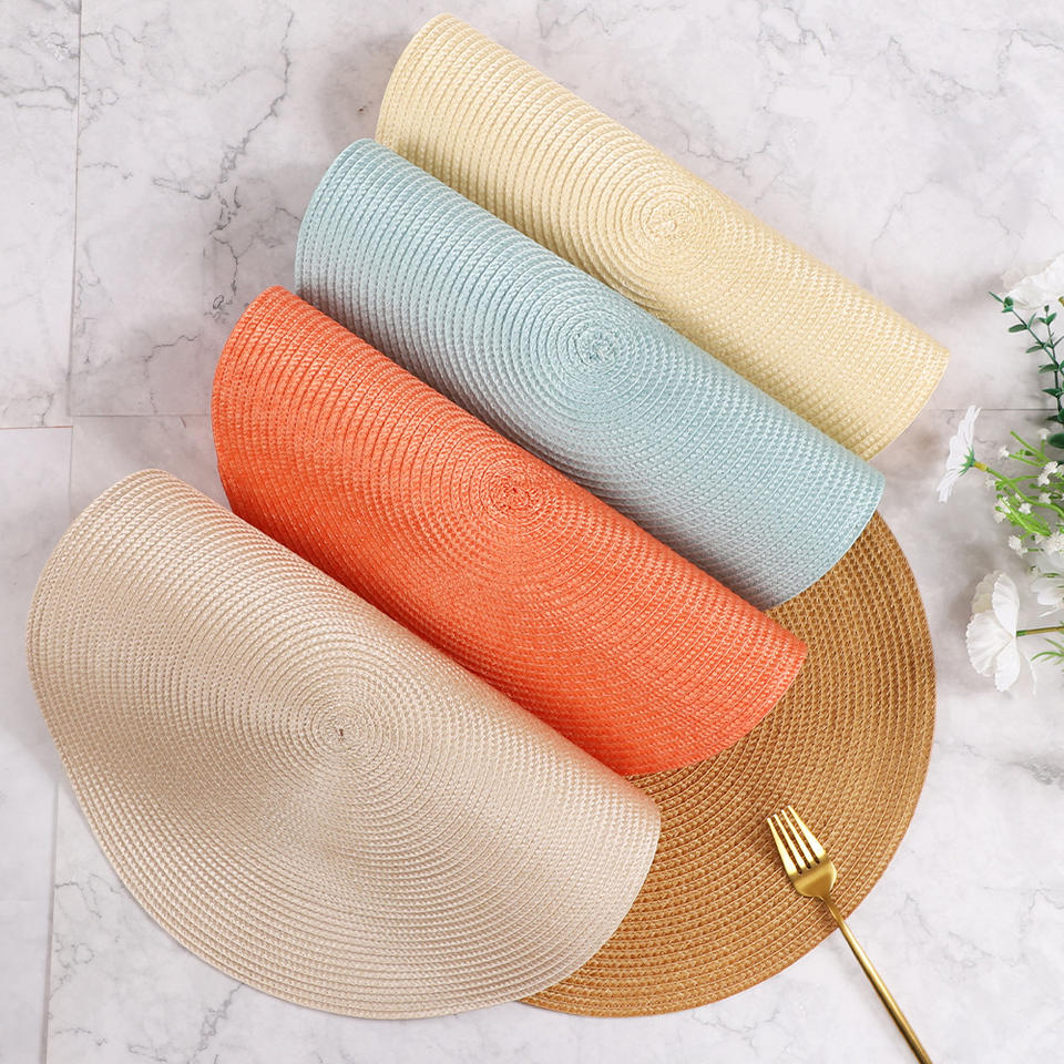 Sets de table ronds en PP tissé à la main de 38 cm, couleur unie, pour salle à manger et cuisine, protection anti-chaleur, dessous de plat, dessous de verre