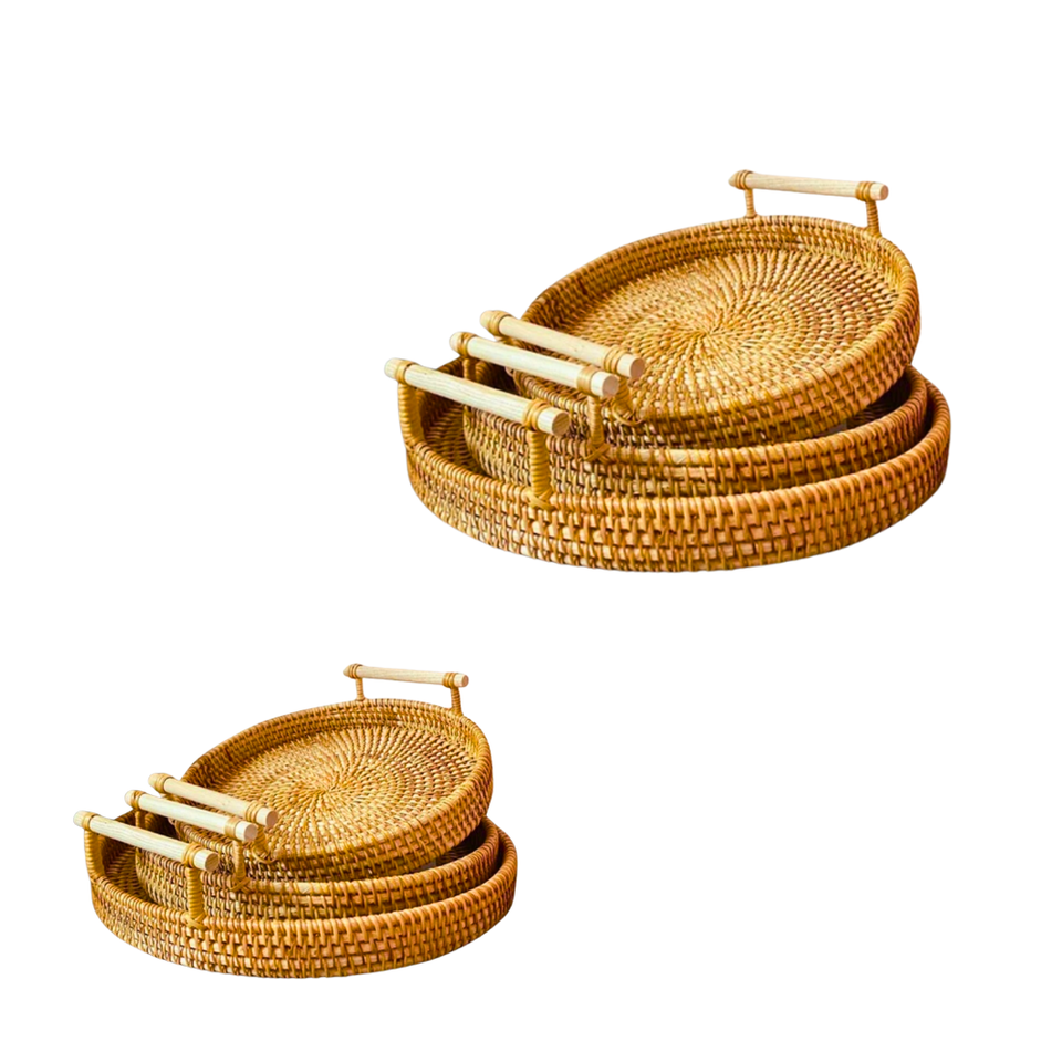 Plateau en rotin tissé à la main, panier de rangement pour fruits, pour servir le thé, les aliments, durable, léger, naturel
