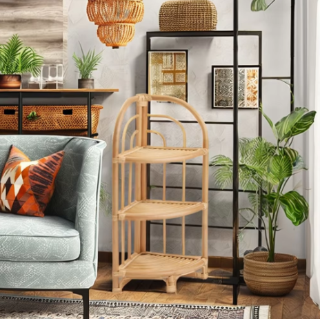 Étagère d'angle en rotin tissé à la main, 3 niveaux, étagère à livres en bambou en forme d'arche, style bohème, support de rangement d'angle sur pied pour usages multiples, en provenance du Vietnam