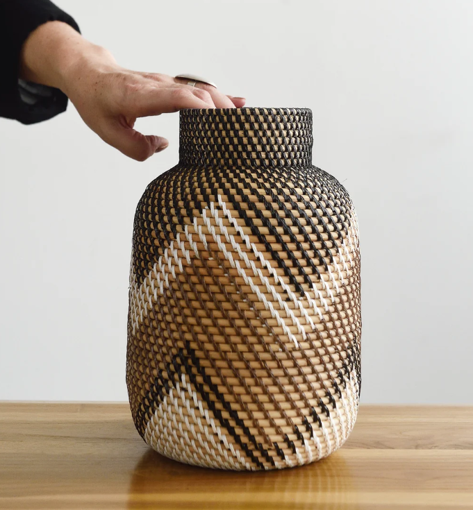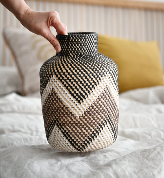 Vase décoratif en rotin tissé à la main Grand vase de sol en osier avec de nombreuses couleurs, accent de décoration rustique Boho du Vietnam