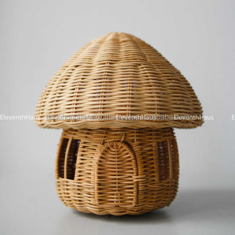 Maison en rotin tressé à la main en forme de champignon, décoration d'intérieur, rangement en osier, artisanat, jouets pour enfants, maison en rotin en forme de champignon