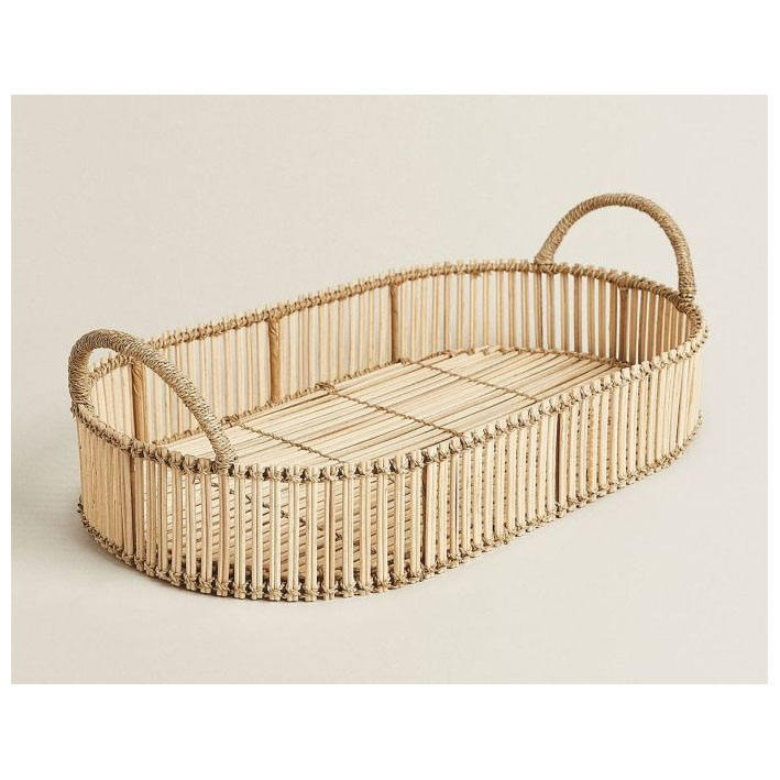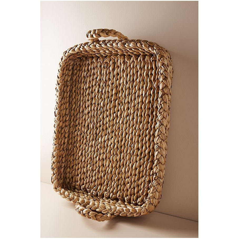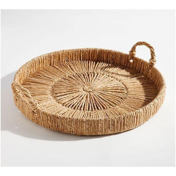 Plateau décoratif en rotin et corde naturelle tissé à la main Panier de service et d'organisation de style ferme et côtier écologique pour la cuisine