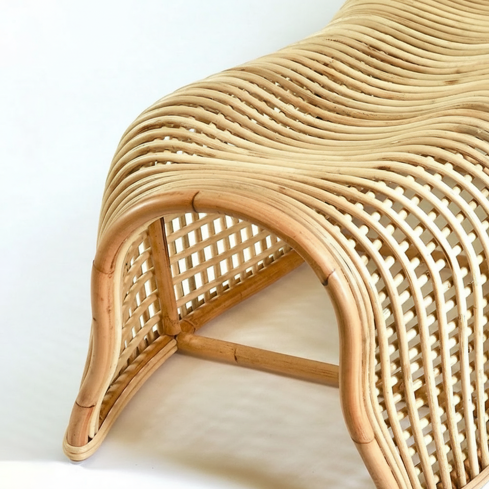 Chaise longue d'extérieur en rotin tressé à la main, design incurvé, banc en osier naturel