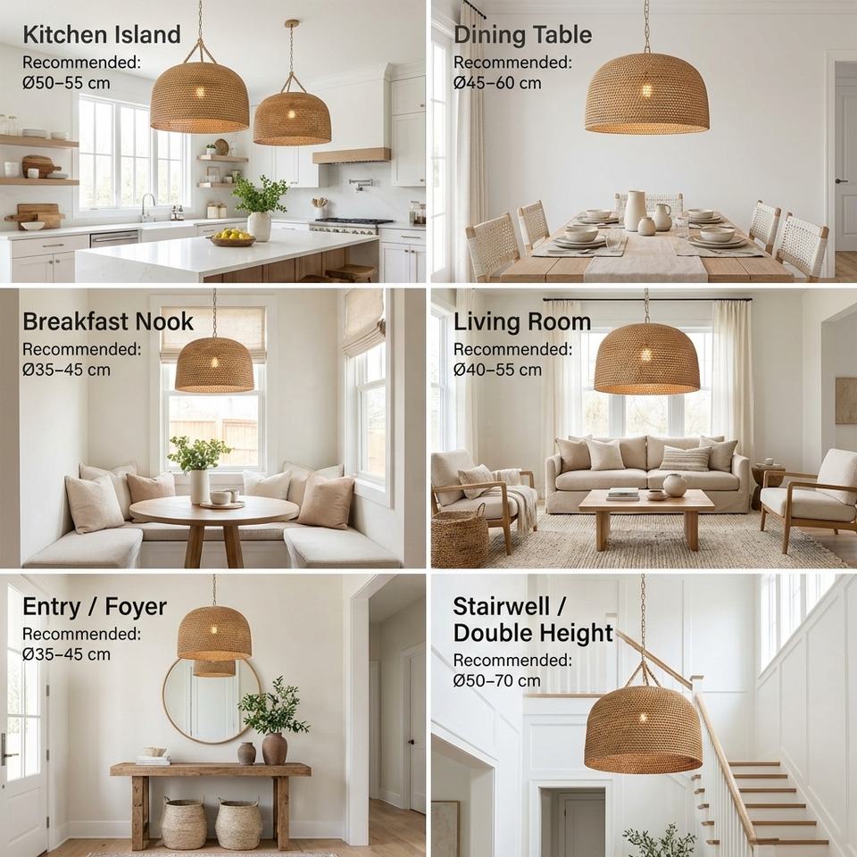 Lampe suspendue en rotin tissé à la main, style bohème, lampe de plafond naturelle pour cuisine, salle à manger, restaurant, bar, hôtel, éclairage écologique