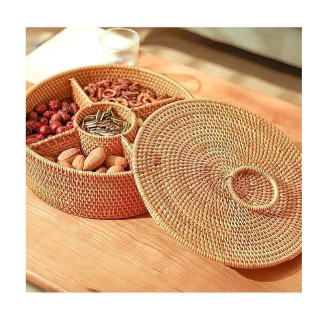 Plateau en rotin tissé à la main, panier en rotin, avec matériau écologique, de conception élégante, pour l'exportation