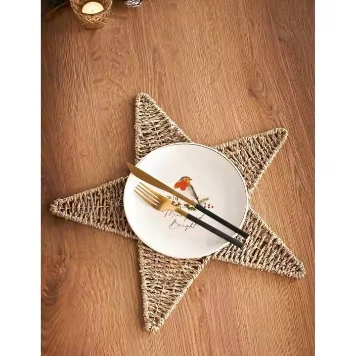 Tissé à la main jonc de mer étoile napperon vaisselle fête décor cuisine fournitures en gros bon prix du Vietnam