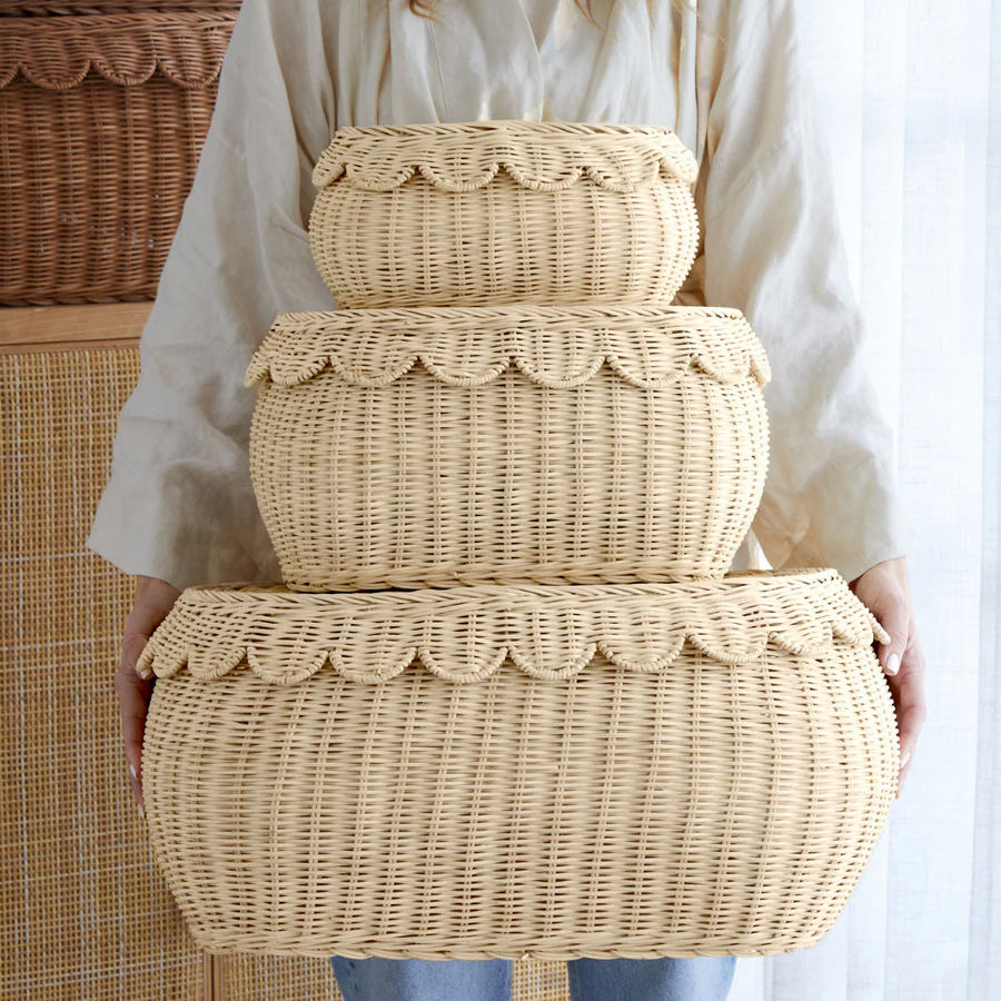 Ensemble de 3 paniers de rangement en rotin naturel tissés à la main, écologiques, avec couvercle, multifonctionnels, pour bijoux, OEM Vietnam