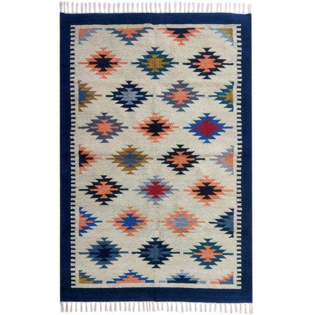 Tapis Dhurrie en coton de soie tissé à la main en pieds 4x6 pour un décor élégant de salon ou de chambre à coucher