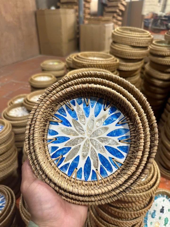 Plateau carré en rotin tissé à la main avec incrustation de nacre pour table à manger, service et présentation décorative, Vietnam