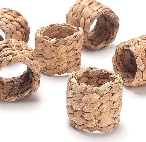 Anneaux de serviette en jacinthe d'eau tissés à la main Décor de table rustique écologique pour les mariages, les restaurants et les repas à la maison