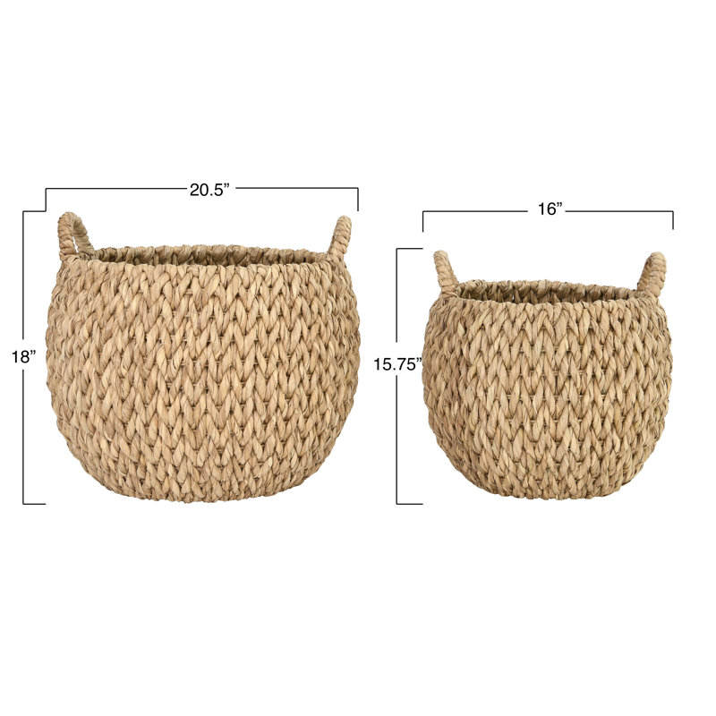 Handwoven Water Hyacinth Woven Basket with Handles for Storage